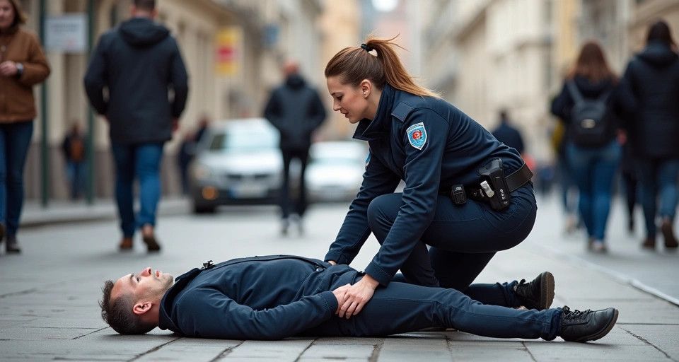 Nagle mężczyzna stracił przytomność. Kobieta niezwłocznie próbowała utrzymać z nim kontakt i prosiła przechodniów o pomoc. Dzięki jej zdecydowanej reakcji oraz wsparciu jednego z przechodniów poszkodowany otrzymał niezbędną pomoc przed przyjazdem służb medycznych.