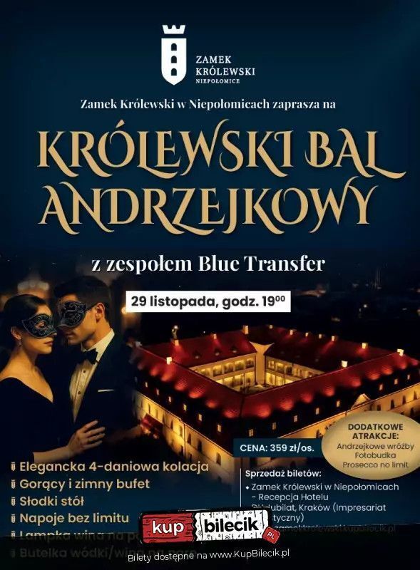• do tańca porwie zespół Blue Transfer - cieszący się dużą popularnością, występujący w wielu prestiżowych miejscach w całej Polsce, wielokrotnie bawiący gości na dużych krakowskich wydarzeniach, takich jak sylwestry, bale seniora, andrzejki itp.